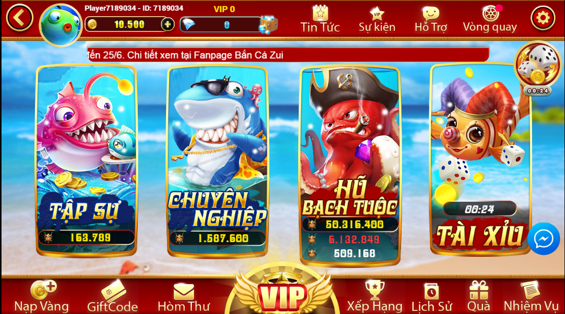 Bắn Cá Zui Club là cổng game bắn cá online hoàn toàn miễn phí và mang tính giải trí cao. Game giúp bạn có thể luyện tập các skill đỉnh cao để trở thành 1 ngư dân vàng trong làng săn cá. Tham gia trực tuyến cùng thử sức, tranh tài với các đối thủ khác cho cảm giác gay cấn cực kỳ chân thực. Đặc biệt với hệ thống boss hoành tráng và rất nhiều Hũ cực khủng cho bạn cơ hội trở thành đại gia đích thực.