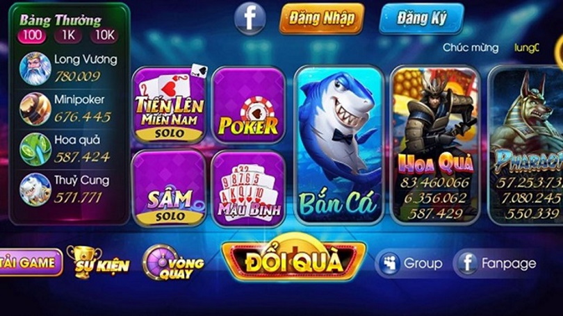 – Slot game: Slot game nổ hũ Hoa Quả, Slot game nổ hũ Pharaoh, Slot game nổ hũ Long Vương, Slot game nổ hũ Thủy Cung…