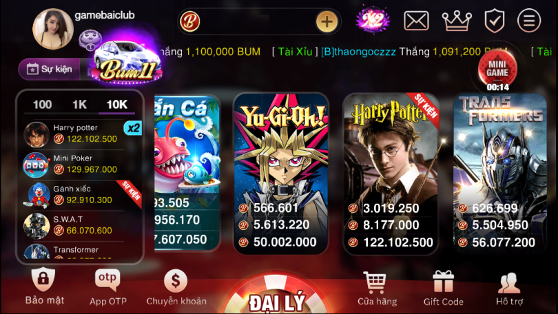 Đây là các sản phẩm chủ đạo của cổng game cũng là tựa game thu hút người chơi tham gia nhiều nhất. Slot game hay quay hũ đổi thưởng tại Bum Club được đầu tư chất lượng rất tốt, cả về đồ họa lẫn cơ chế quay thưởng, luật chơi cũng rất hấp dẫn và bên cạnh đó không thể không nhắc đến tỷ lệ nổ hũ khá cao. Các slot game nổi bật hiện nay có thể kể đến như: YuGi-Oh, Harry Potter, Transformers…