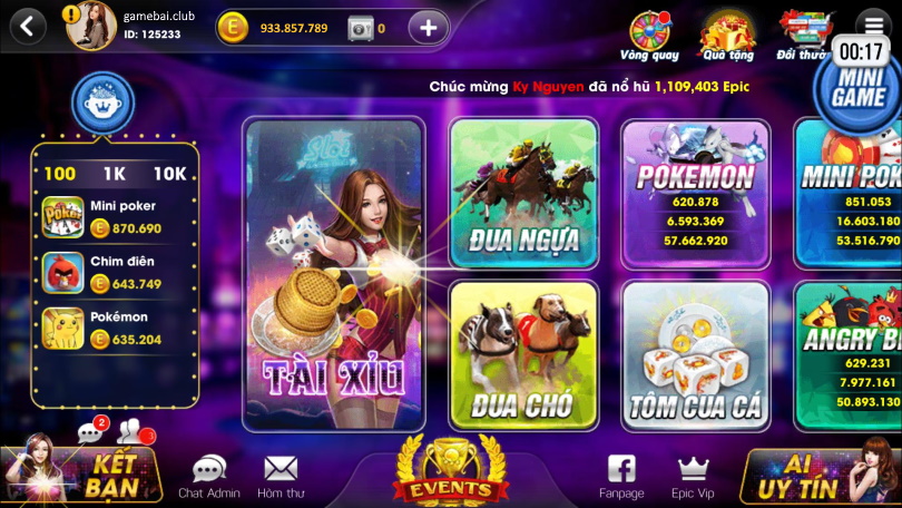 Cổng game bài đổi thưởng Epic Jackpot có hệ thống tựa game vô cùng phong phú ở rộng rãi thể loại khác nhau. game cũng hỗ trợ đa dạng ngôn ngữ không giống nhau với hy vọng sẽ đem đến 1 sân chơi mới kết nối cộng đồng người chơi trên khắp thế giới. Các tựa game đổi thưởng tuyệt hay không thể bỏ qua như:
