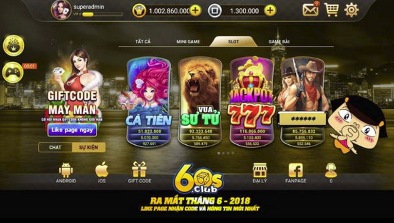 – Slot game: Hệ thống Slot game tại cổng game đổi thưởng 60s gồm những trò chơi đang hot nhất trên thị trường hiện nay, bao gồm: Cá tiên, Vua Sư tử, Jackpot 777, Cao Bồi, Đêm Thượng Hải. Mỗi trò chơi có những level khác nhau đi từ thấp đến cao buộc người chơi phải chinh phục qua từng giai đoạn. Ở mỗi level người chơi sẽ được thưởng các mức tiền khác nhau.