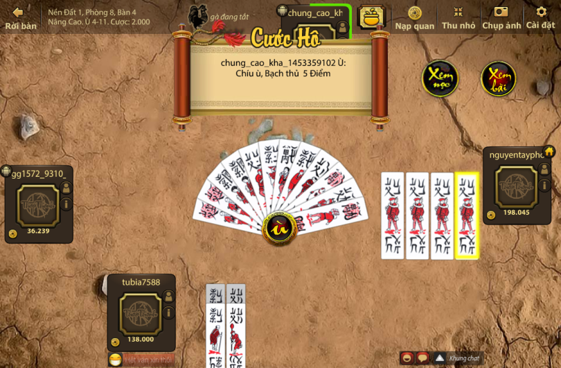 Ngư ông bắt cá: Trên tay có chi chi (2 chi) và 2 ngũ sách, chì bạch thủ bát vạn.