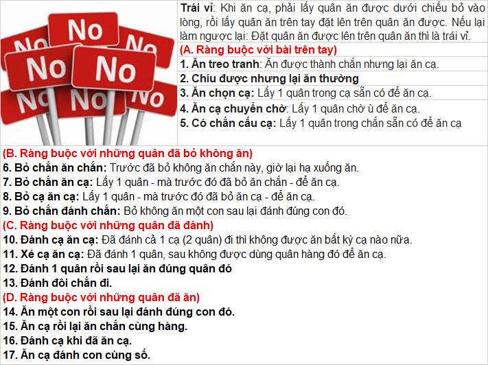 • Các thao tác bị coi là phạm luật trong chơi chắn: Được mô tả theo hình dưới đây