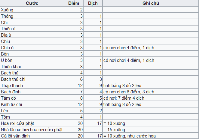 Nếu chơi gà thì điểm tổng được cộng thêm với số gà x số điểm cho mỗi gà (thường là 5 điểm)