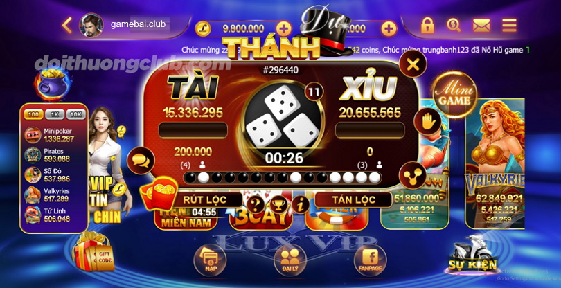 – Mini game: Xóc Xóc, Long Hổ, Cờ, Tài Xỉu, Mini Poker, Số Đỏ, Bầu Cua, Cao Thấp, Vòng Quay May Mắn…