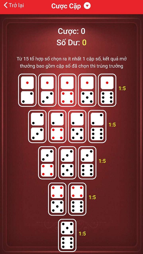 – Với cược bộ đôi đồng nhất, bạn không được phép cược bộ đôi đồng nhất bất kỳ mà phải chọn một bộ đôi đồng nhất cụ thể để cược nhà cái quy định.