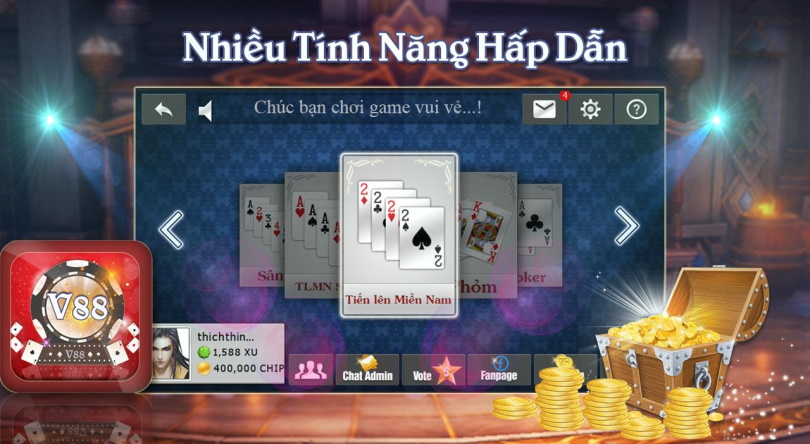 Tham gia game bài V88 – Đánh bài đổi thưởng bạn sẽ được khuyến mại Xu để chơi trải nghiệm cùng nhiều nhiệm vụ để kiếm Xu.